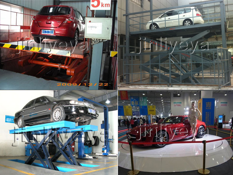 The car lift runs smoothly and has a large worktable, generally used for maintenance and other operations of large cars. The lifting process has low noise, strong force, simple and convenient maintenance, low maintenance costs, and long service life. The elevator is installed in the pit, and when it descends to a low height, the workbench is level with the ground. The platform is equipped with overload alarm and overload protection devices to ensure safe lifting and lowering of the platform. The hydraulic system is equipped with explosion-proof valves to prevent the platform from falling due to oil pipe rupture. The main body of the platform is made of structural steel, which has strong bearing capacity, safety and durability. Equipped with safety devices such as balance valve, safety pressure holding, emergency stop, etc. It can achieve offline, on platform, and remote control of lifting and lowering according to user requirements.   Note: Can be designed and manufactured according to user requirements Applicable locations: Scissor type car lifts are mainly used in car 4S stores, car repair shops, three-dimensional parking garages, freight terminals and other places. Due to its simple structure and good synchronization, it is commonly used as a platform for four-wheel alignment devices. Scissor type car lifts are mainly used in car 4S stores, car repair shops, three-dimensional parking garages, freight terminals and other places. Due to its simple structure and good synchronization, it is commonly used as a platform for four-wheel alignment devices. Scissor lifts are divided into several types, such as large scissors (mother and child), small scissors (single scissors) lifts, and ultra-thin series scissor lifts. The small scissor lift is mainly used for car maintenance and repair, with high safety and easy operation. After digging the trench, level it with the ground. The large shear lift has a relatively large amount of water coming out, which is used in conjunction with four-wheel alignment equipment and can be used for car maintenance, tire and chassis inspection. It can be excavated or directly installed on the ground. The ultra-thin series scissor lift does not require digging grooves and is suitable for repair shops. Some floors are not suitable for installing two column lifts and ordinary four column lifts. However, this machine has a wide contact surface with the floor, so it can be installed on floors that can be driven, solving customer site problems. This type of machine will be the mainstream product in the future, and it will be widely used abroad. Product knowledge: 1、 Precautions During installation and use of the platform, the workbench should be kept level. 2. During the lifting process of the platform, it is strictly prohibited for any personnel to climb. If maintenance is required, the platform should be lifted and then The platform must be firmly secured before proceeding 3. Overloading operations are strictly prohibited during the use of the platform, and the items carried should be placed in the middle of the workbench surface Heart position must not be moved or biased. 4. The hydraulic oil used should be kept clean and free from water and other impurities. When the platform malfunctions, the power supply should be cut off in a timely manner for maintenance. 2、 Maintenance and upkeep 1. The elevator is a scissor lift, and its rotating part is connected by a shaft pin and a shaft sleeve. In order to reduce friction, there is a grease nipple at the end of the shaft pin for adding lubricating grease. The platform must be lubricated after 80 hours or about 10 days of use. 2. After adding hydraulic oil to the elevator every 200 hours of operation, about 6 months, replace the hydraulic oil with a viscosity of 22-46mm/s; Hydraulic oil with high viscosity is used in high temperature working environments, and it must be filtered when refueling. Hydraulic oil is generally N46 in summer and N32 in winter. After working for 80 hours, about 10 days, it is necessary to inspect the screw cap on the pin for looseness. If there is any looseness, it should be dealt with urgently. Our factory is spacious and bright, with excellent production equipment and imported production line equipment, Our leading products include over ten series, including high-altitude work platforms, hydraulic lifts, lifting platforms, boarding bridges, electric flatbed trucks, hedge trimmers, railway bridges, and car lifts. Jinli adopts a flexible production system to meet customers' special requirements for the design and production of lifting platforms. In the design and production departments of Jinli, we are able to quickly provide solutions for a series of special requirements raised by customers. Our products have been successfully applied in many industries such as aerospace, aviation, nuclear power, logistics, pharmaceuticals, railways, chemicals, and automobiles.