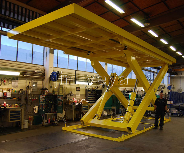 固定式大載荷升降機(jī)載重量大,運(yùn)行平穩(wěn),一般工作臺(tái)面較大。